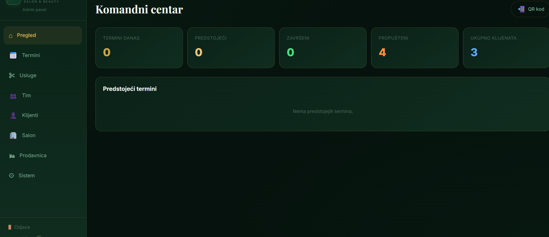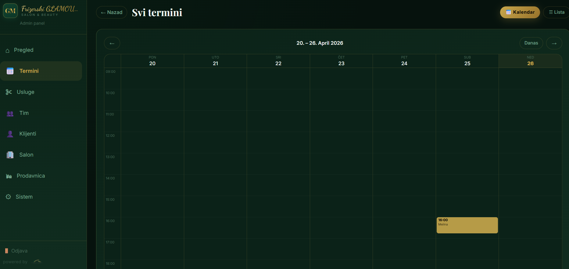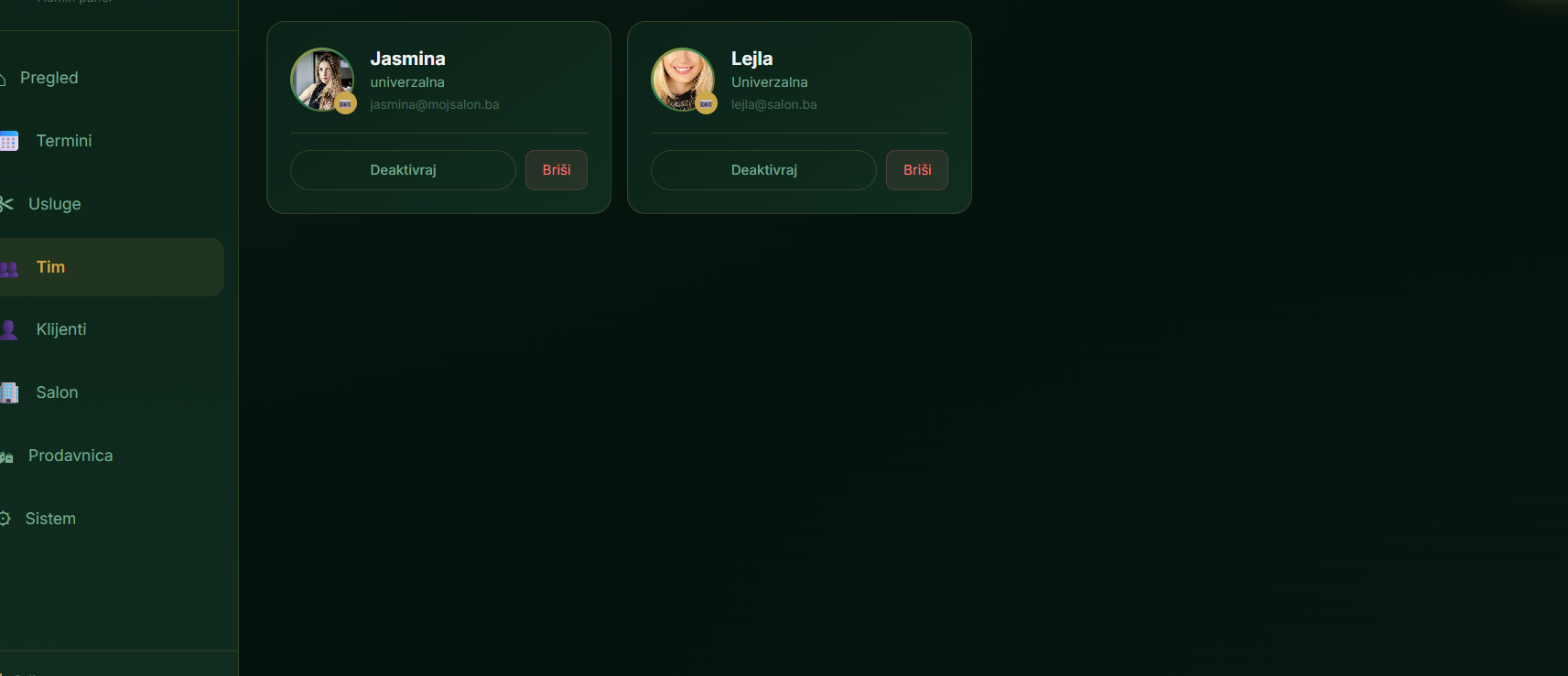 Statistike, prihodi, kalendar termina, upravljanje osobljem i klijentima — sve u realnom vremenu.