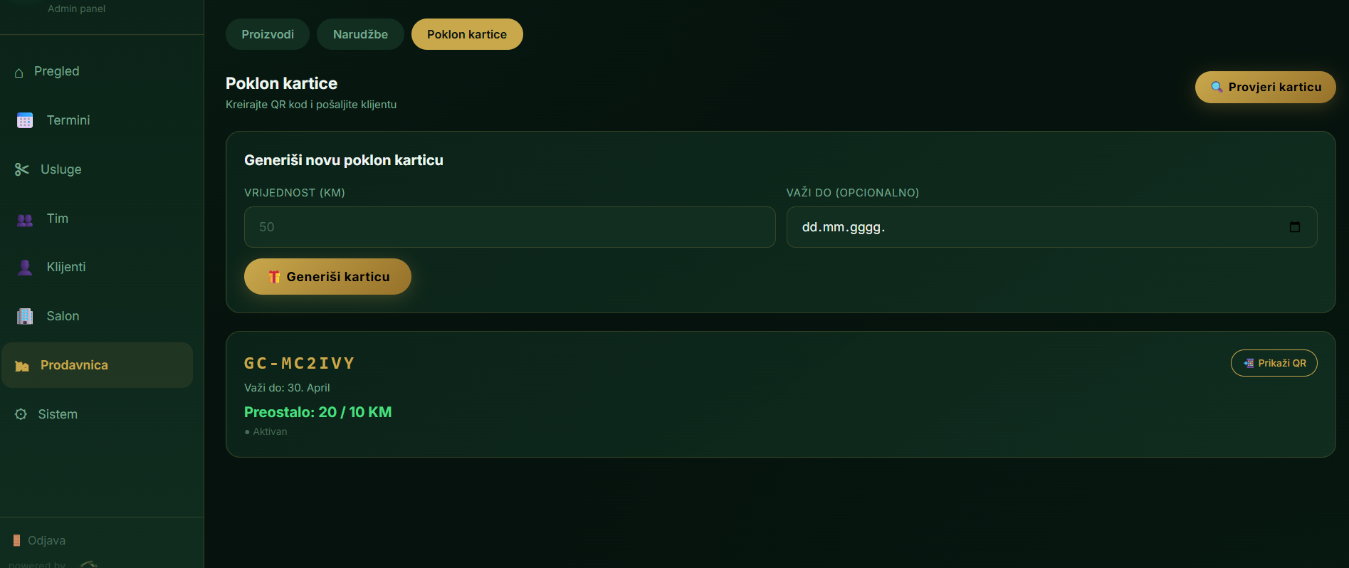 Digitalne poklon kartice s QR kodom. Sistem nagrađivanja za lojalne klijente.