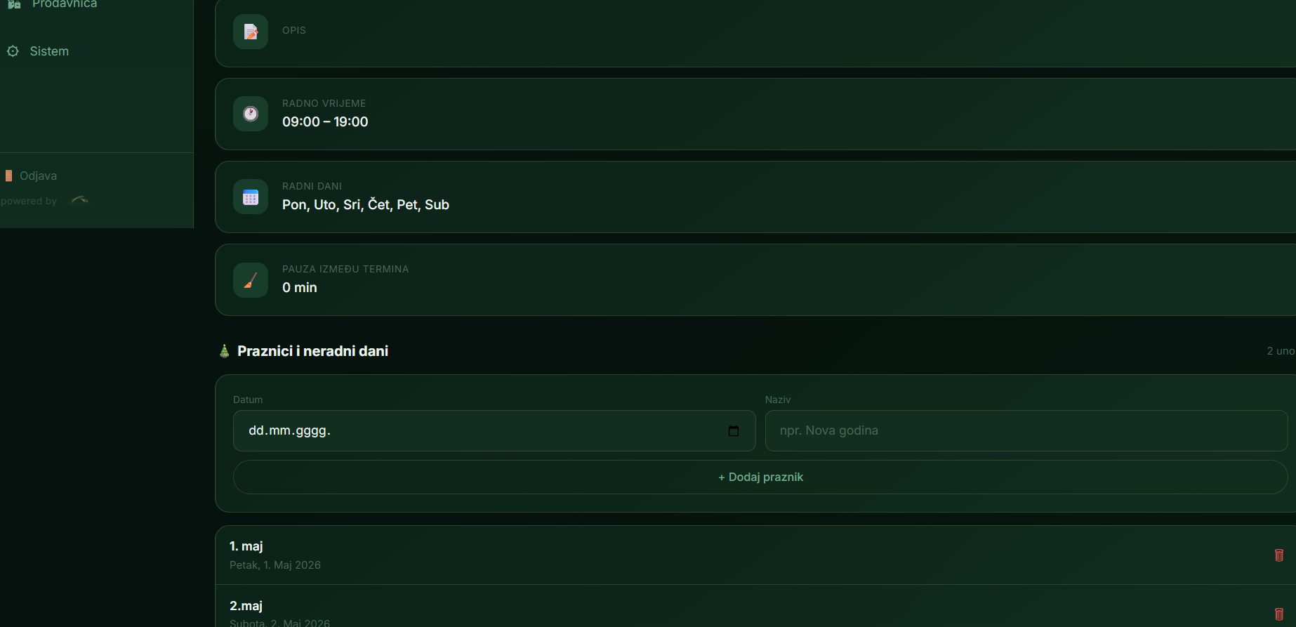 Prodajte proizvode uz termin. Narudžbe, dostava, poklon kartice — sve na jednom mjestu.